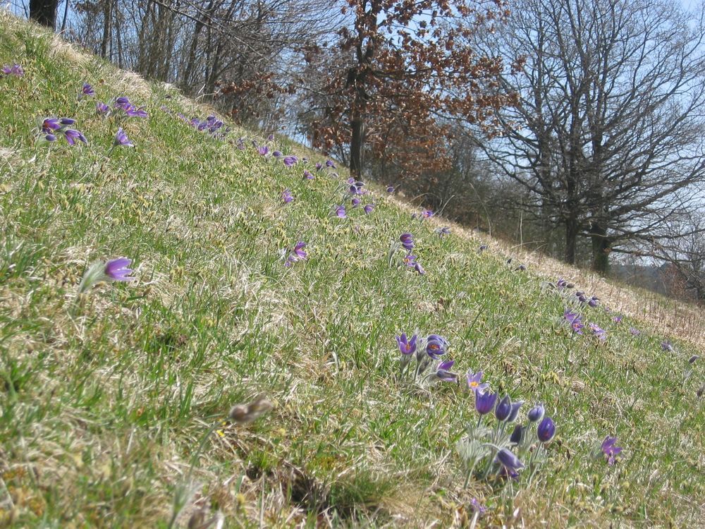 Im zeitigen Frühjahr ist dieser Hang ein Idyll: Violett blüht die seltene Küchenschelle, dazwischen die sattgelbe Schlüsselblume und im Herbst die weißglänzenden Blütenkörbe der Silberdistel.
