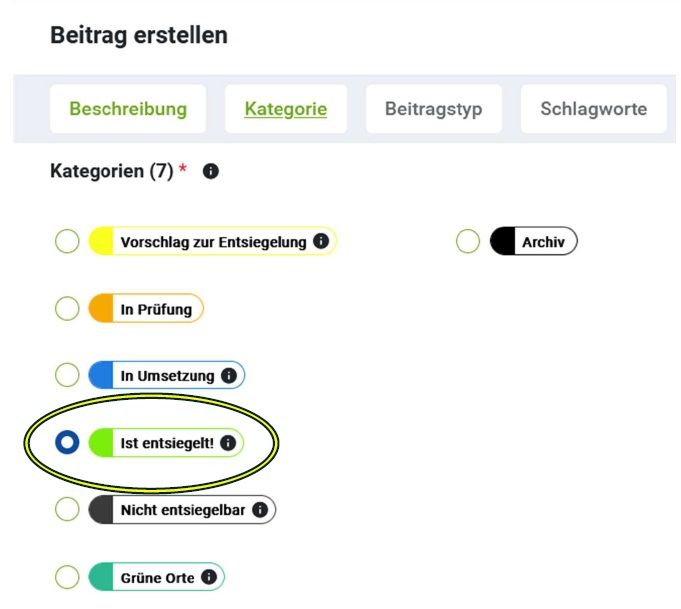 5. Melde dein Projekt auf https://abpflastern-landsberg.beteilige.me und erstelle dort deinen Beitrag. Kennzeichne dabei die Fläche als "Ist entsiegelt" (hellgrüner Button, siehe Bild unten).