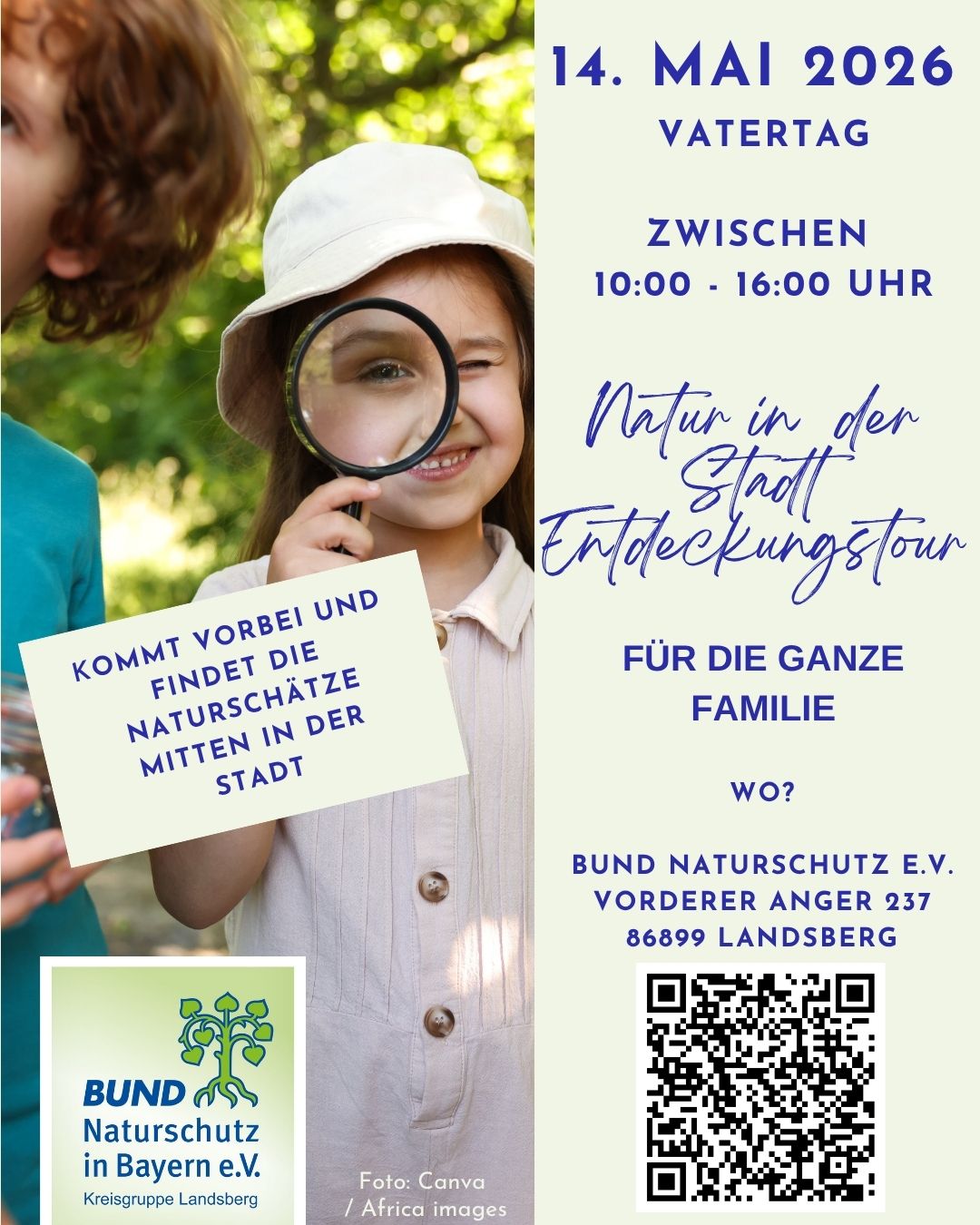 Unter dem Motto „Natur in der Stadt erleben” führt euch ein abwechslungsreicher Rundweg durch Landsberg. Unterwegs warten spannende Aufgaben und Rätsel rund um die heimische Natur auf euch. Wer alle Stationen meistert, darf sich am Ende über einen kleinen Preis freuen.